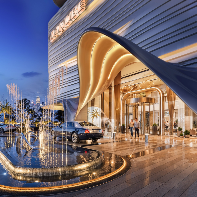 The Breez at Dubai Maritime City, designed by Danube Properties, offers a luxurious waterfront lifestyle that complements its surroundings. This tower features stunning sea views and a curved design, positioned in the heart of Dubai's skyline. Its landscaped base creates smooth transitions between indoor luxury and outdoor leisure. Designed as a vertical community, different levels connect homes with social and wellness spaces. The spacious lobby, featuring a 1,500 sq ft aquarium and waterfall atrium, welcomes residents into a calm, ocean-inspired environment.